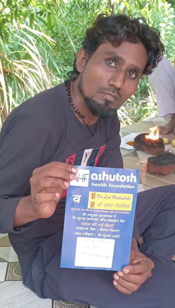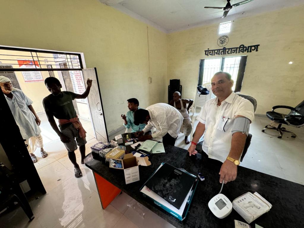 Meeting Pradhan (Chief) of the Kainda Village for permission to conduct our first health camp [seated in the middle with legs crossed]